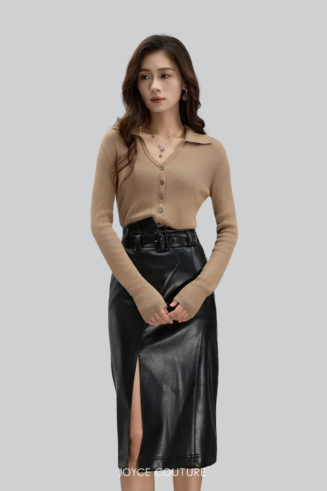 不对称腰线铅笔中长裙 S0148