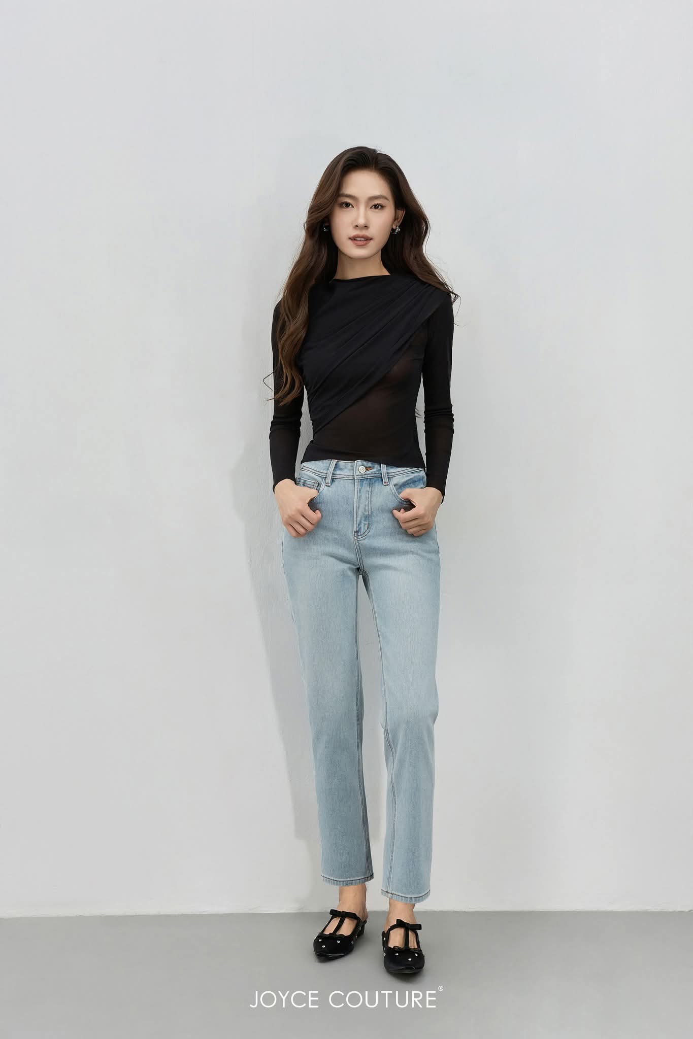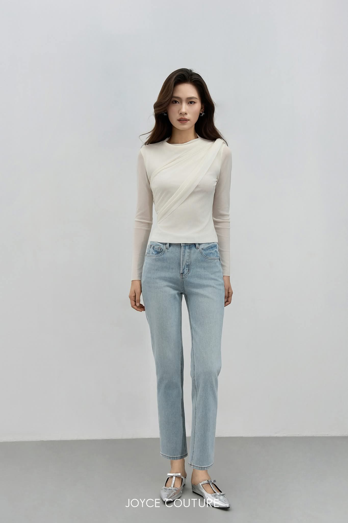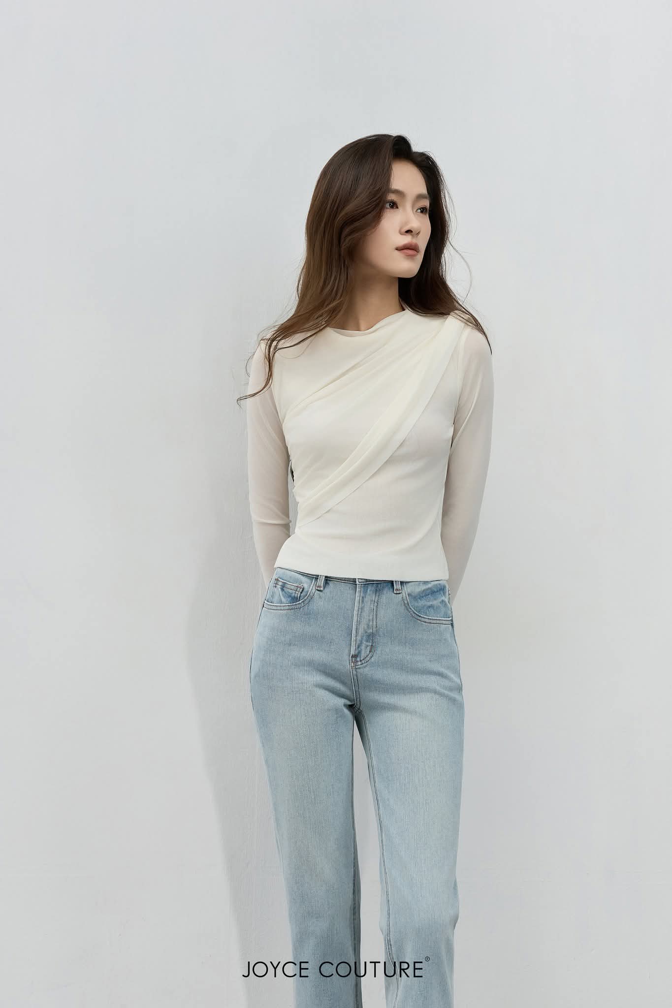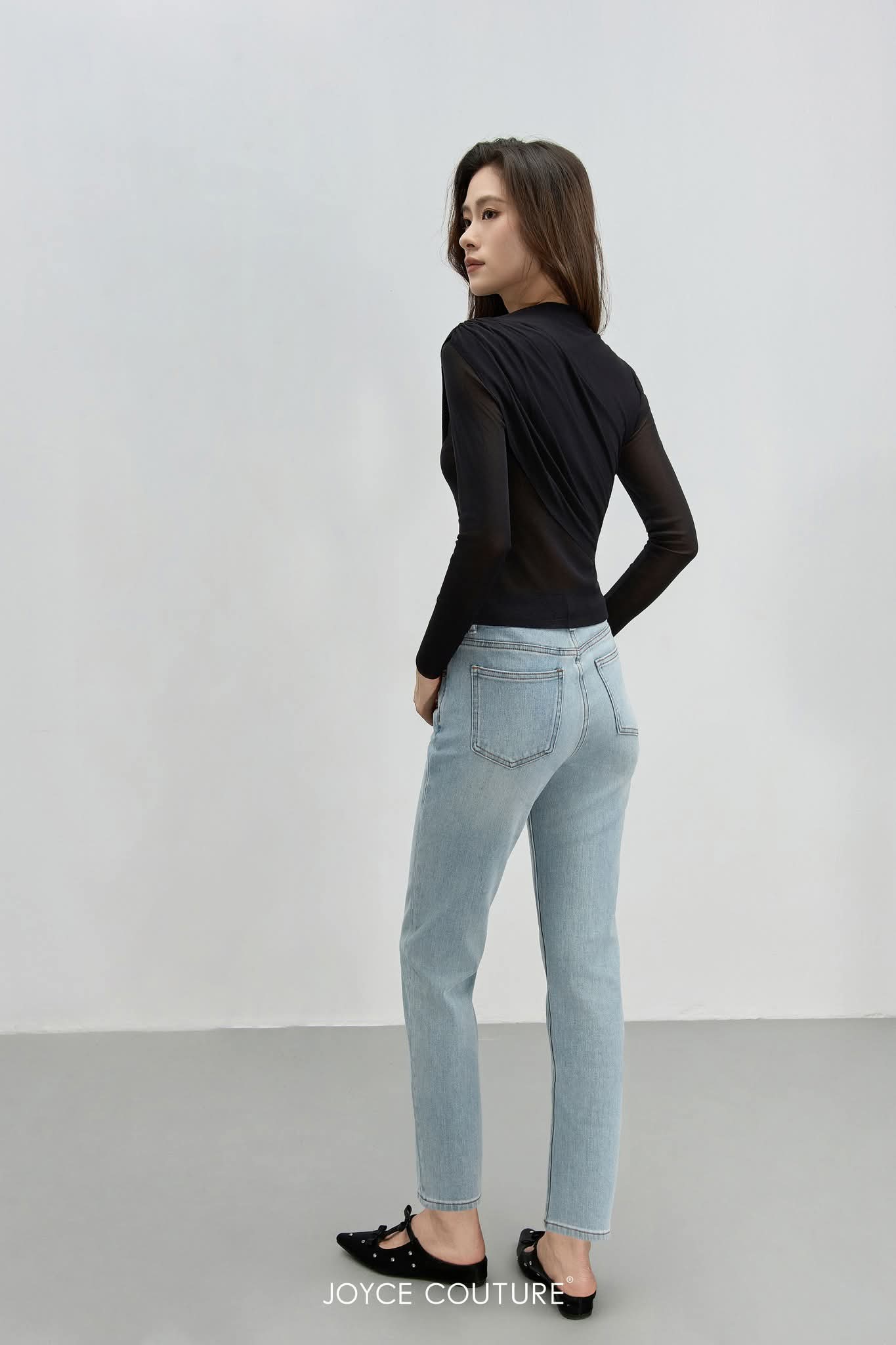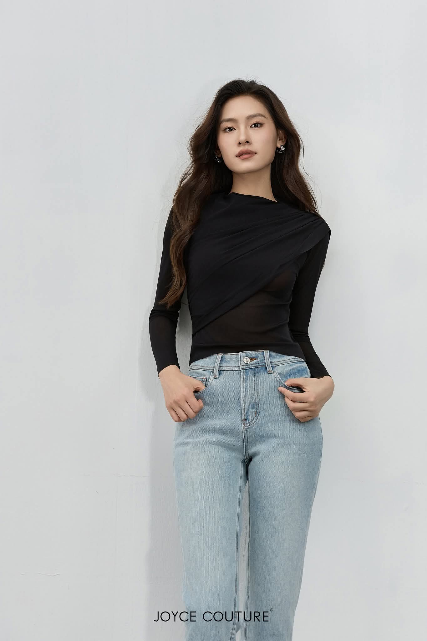 弹力网纱长袖上衣 T0705